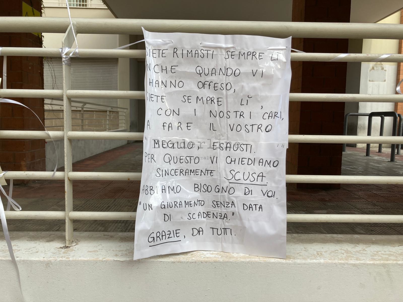 “Ci siete stati sempre anche quando vi hanno offeso. Siete sempre lì a fare del vostro meglio, esausti per quello che vi chiediamo”. “Abbiamo bisogno di voi, grazie per quello che fate”. Sono due dei messaggi lasciati a poca distanza dal pronto soccorso del Policlinico di Bari, come testimonianza anonima verso tutto il personale sanitario impegnato nella seconda ondata Covid.