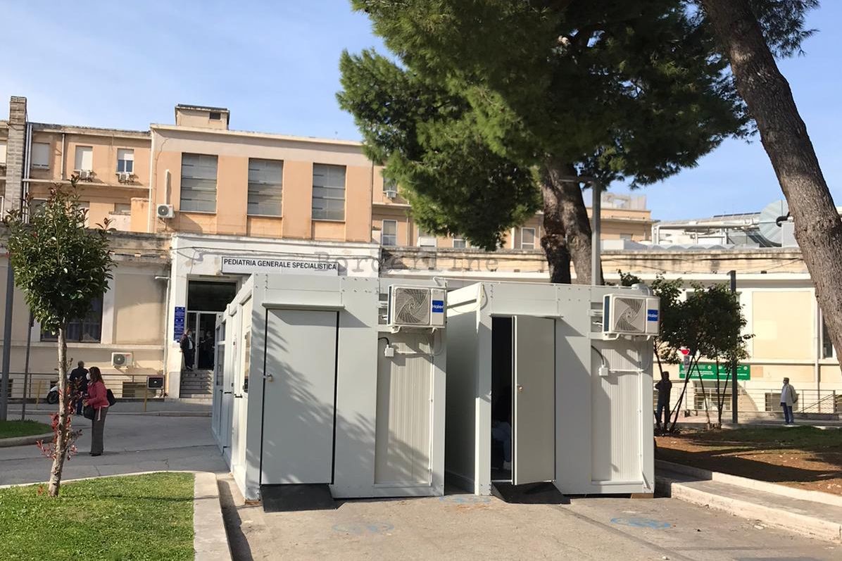Quindi a quattro mesi di distanza in pieno inverno, i cittadini continuano a chiedere alla dirigenza del Policlinico una zona per l’attesa più confortevole. Nelle foto in basso la struttura a poca distanza dalla pediatria generale specialistica.