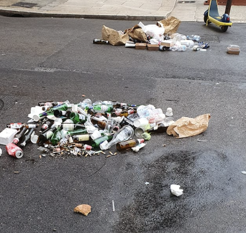Decine di bottiglie, lattine e rifiuti di altro genere abbandonati e accumulati al centro strada. Accade a Bari in via Cognetti, dove una residente dell’Umbertino posta su un gruppo Facebook…