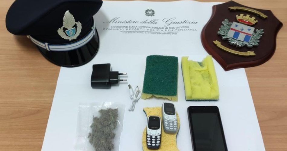 Un pacchetto con tre telefoni cellulari, un caricabatterie e 15 grammi di marijuana è stato lanciato nel carcere di San Severo, all’interno della zona in cui passeggiano i detenuti, la cosiddetta ‘inter-cinta’. Gli agenti penitenziari hanno scoperto il pacco e sequestrato il suo contenuto.
