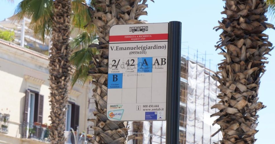 L’Amtab a Bari ha avviato la sostituzione di tutte le 1.200 paline sulla rete dei bus urbani, mentre nelle prossime settimane partirà anche l’installazione di 60 nuove pensiline per fermata su tutto il territorio. La foto d’anteprima mostra una dei nuovi cartelli con una struttura in lega di alluminio e materiali e finiture anti vandalo.