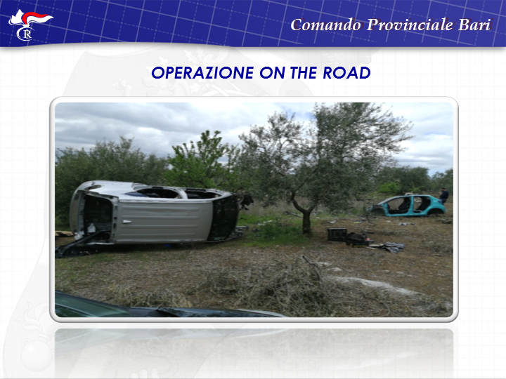 Nella giornata odierna i carabinieri delle Sezioni Operative di Barletta e di Andria hanno dato esecuzione a una nuova misura cautelare nei confronti di 12 indagati delle città di Andria e Corato, ritenuti responsabili di associazione per delinquere finalizzata ai furti sistematici di autovetture, riciclaggio e rapine in danno di autotrasportatori.