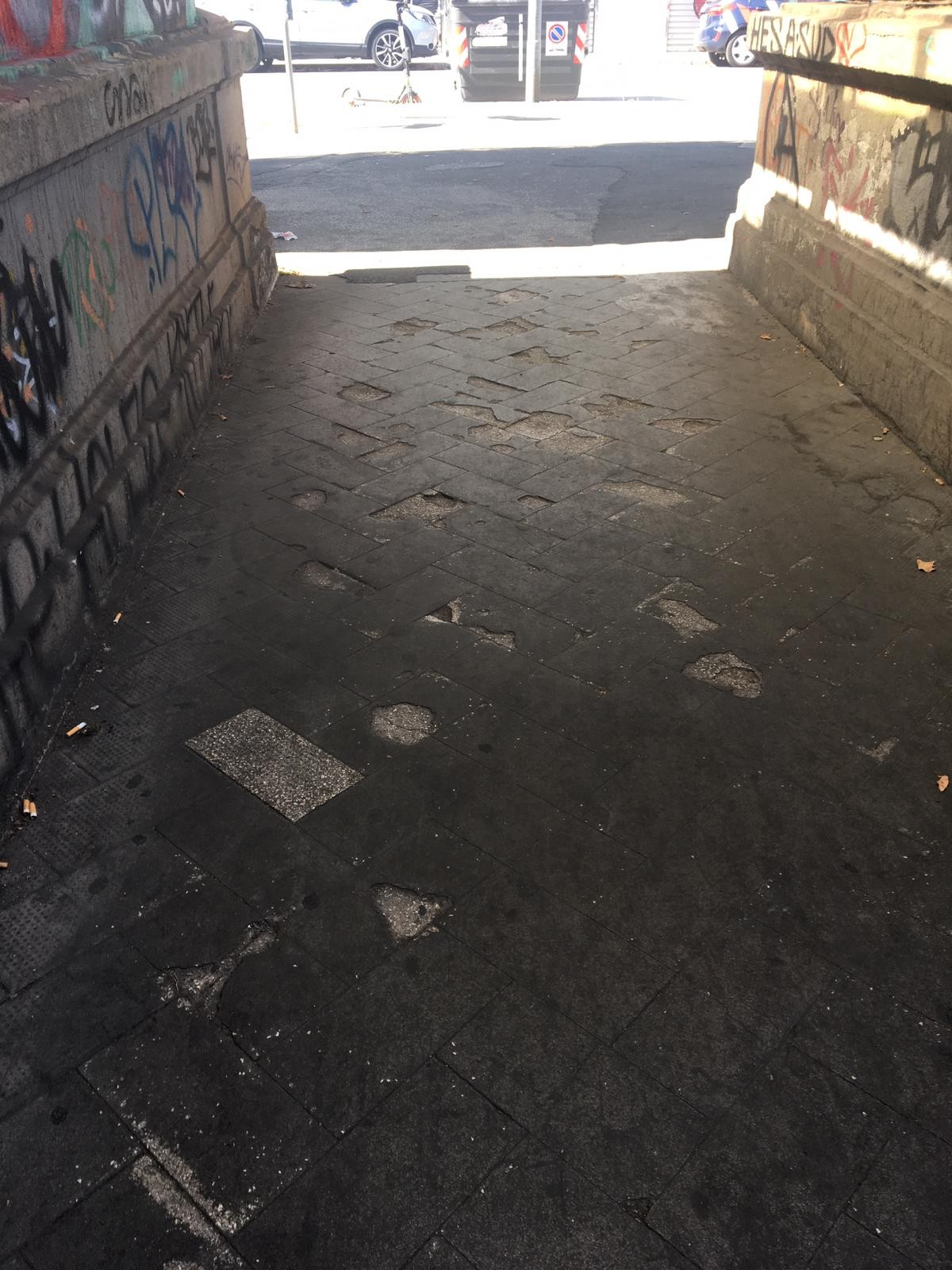 Bari, dal marciapiede sconnesso al tanfo di urina: disagi per i pedoni nel sottopasso Capruzzi