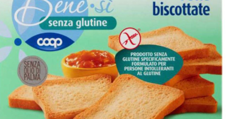 Coop ha pubblicato sul suo sito internet il richiamo delle fette biscottate senza glutine Benesì, per “ossido di etilene superiore al limite di legge in un ingrediente”. Il lotto in questione è il n° 1082 delle “Fette Biscottate Senza Glutine Benesì Coop 250 g” in confezione da 24 fette a marchio COOP, EAN 8001120937308, con scadenza minima del 23/11/2021.
