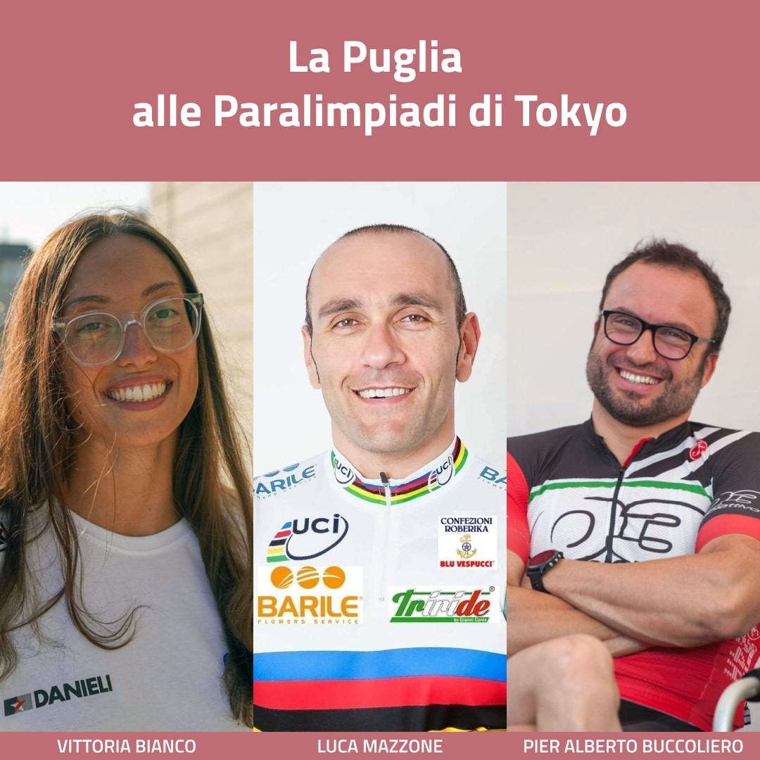 Al via la XVI edizione delle Paralimpiadi estive che si terranno a Tokyo da oggi, 24 agosto al 5 settembre 2021. Atleti e atlete si sfidano in 22 discipline sportive, per un totale di 539 eventi. La squadra italiana si presenta all’appuntamento con un gruppo numeroso composto da 115 partecipanti, di cui tre pugliesi: Vittoria Bianco, nuoto, classe 1995 da Putignano (Bari), Pier Alberto Buccoliero, triathlon, classe 1987 da Manduria (Taranto) e Luca Mazzone, handbike, classe 1971 da Terlizzi (Bari). Dalla Regione Puglia l’in bocca a lupo via social.