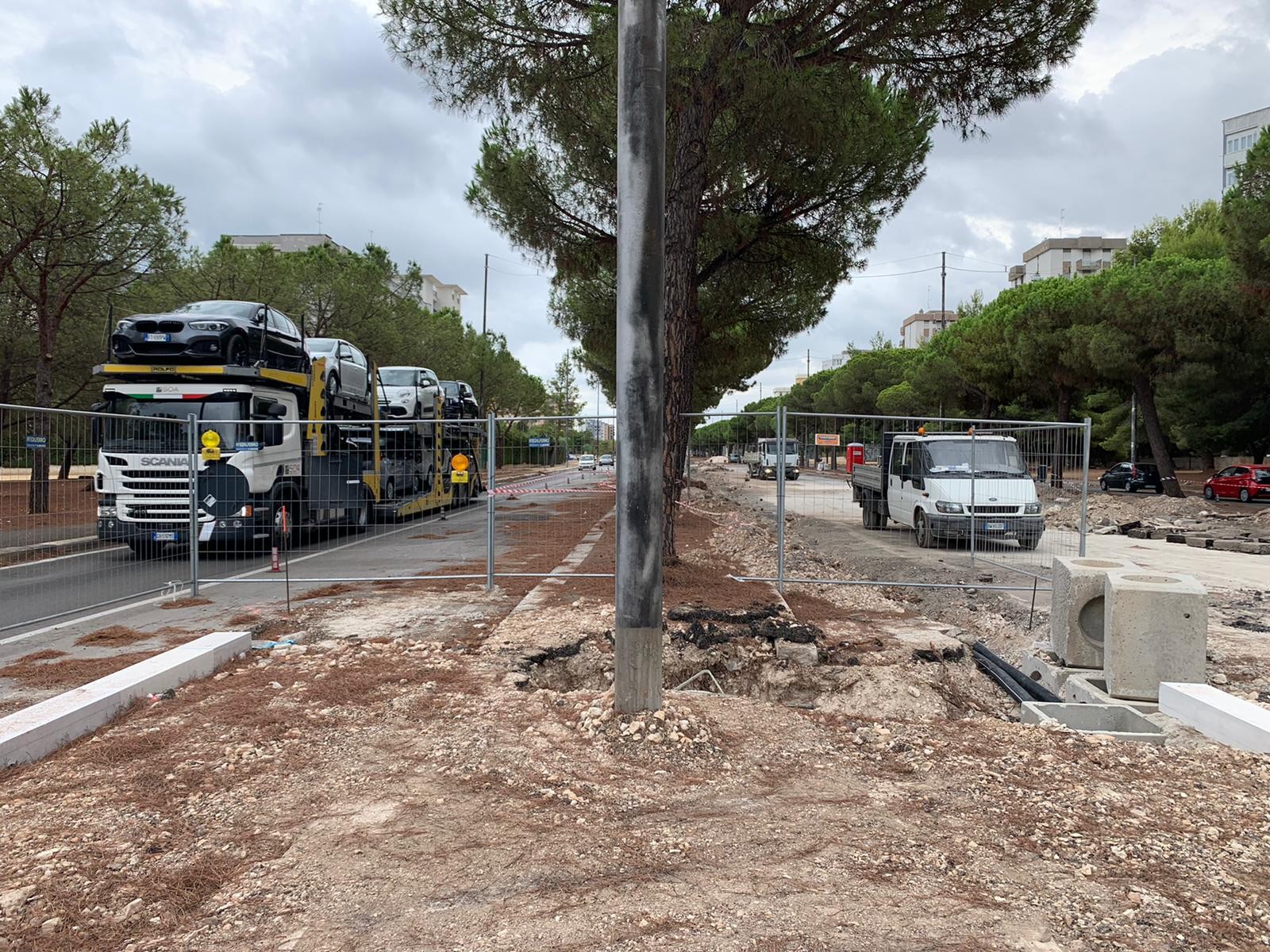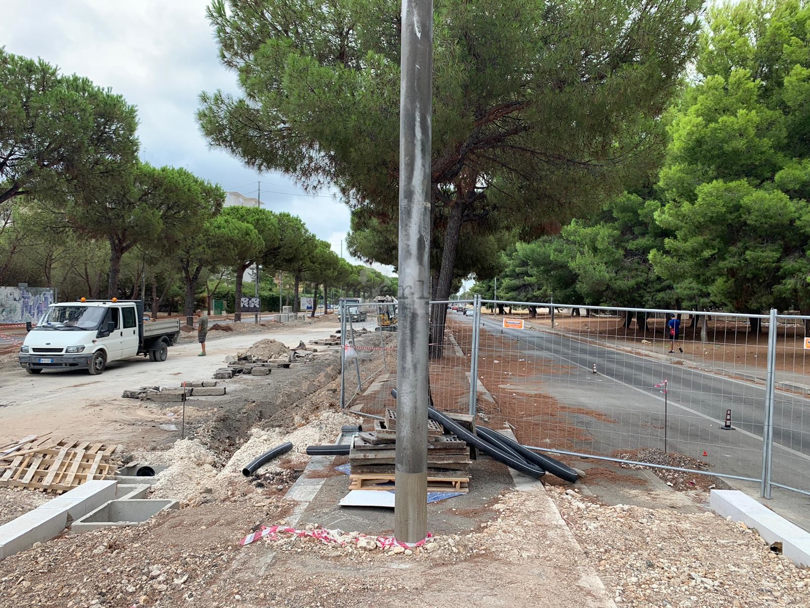 Attualmente gli interventi insistono sulle corsie centrali dove è in corso di realizzazione un allargamento dell’area riservata ai due spartitraffico centrali, la cui superficie passerà da 1.700 metri quadri a oltre 4mila, in modo da consentire ad autovetture, ciclomotori e biciclette di transitare in sicurezza e alle radici dei 160 alberi di pino presenti di svilupparsi senza causare disagi alla circolazione con il sollevamento dell’asfalto. Contestualmente, per evitare la formazione di ristagni in caso di piogge, saranno apportate delle modifiche alla rete di captazione delle acque attraverso la sostituzione dei pozzetti di raccolta con altri angolari, con geometria e dispositivi anti-ago in grado di intercettare al meglio l’acqua anche in presenza di grossi quantitativi di aghi di pino.