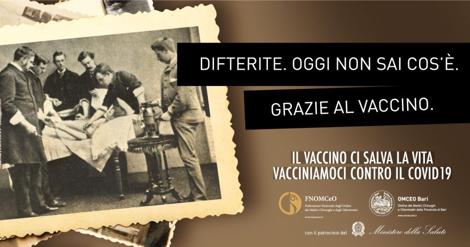 “Con la campagna abbiamo voluto rammentare l’esempio della difterite e delle terribili epidemie da vaiolo, per ricordare a tutti come la vaccinazione sia una conquista della scienza al servizio dell’umanità e abbia permesso di porre fine a malattie mortali o invalidanti. – commenta Filippo Anelli, Presidente della Fnomceo e dell’Omceo Bari – “Come è accaduto in passato per queste malattie, oggi il vaccino contro il Covid 19 ci permetterà di tutelare la vita e la salute di tutti e di uscire finalmente dall’incubo pandemico. Quindi, come medico e cittadino, l’invito che faccio a tutti è di non avere timore, di affidarsi alla scienza e di vaccinarsi”.
