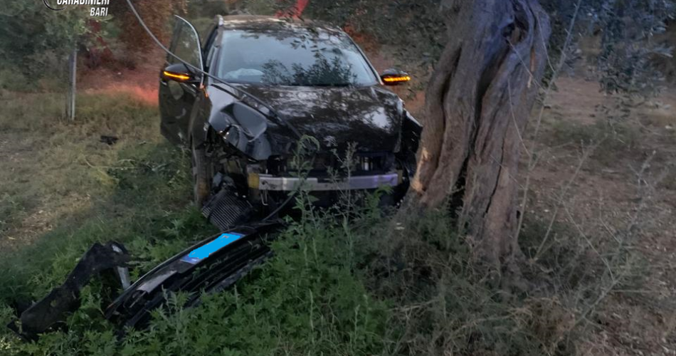 Ne è scaturito un prolungato inseguimento, terminato lungo la provinciale S.P. 90 “Sannicandro-Bitetto”, dopo circa 40 chilometri, allorquando il conducente della citata berlina, dopo aver posto in essere ripetutamente manovre spericolate finalizzate a far desistere gli inseguitori, a causa della forte velocità, ha perso il controllo del mezzo andandosi a schiantare contro un albero di ulivo dislocato lungo il ciglio stradale.