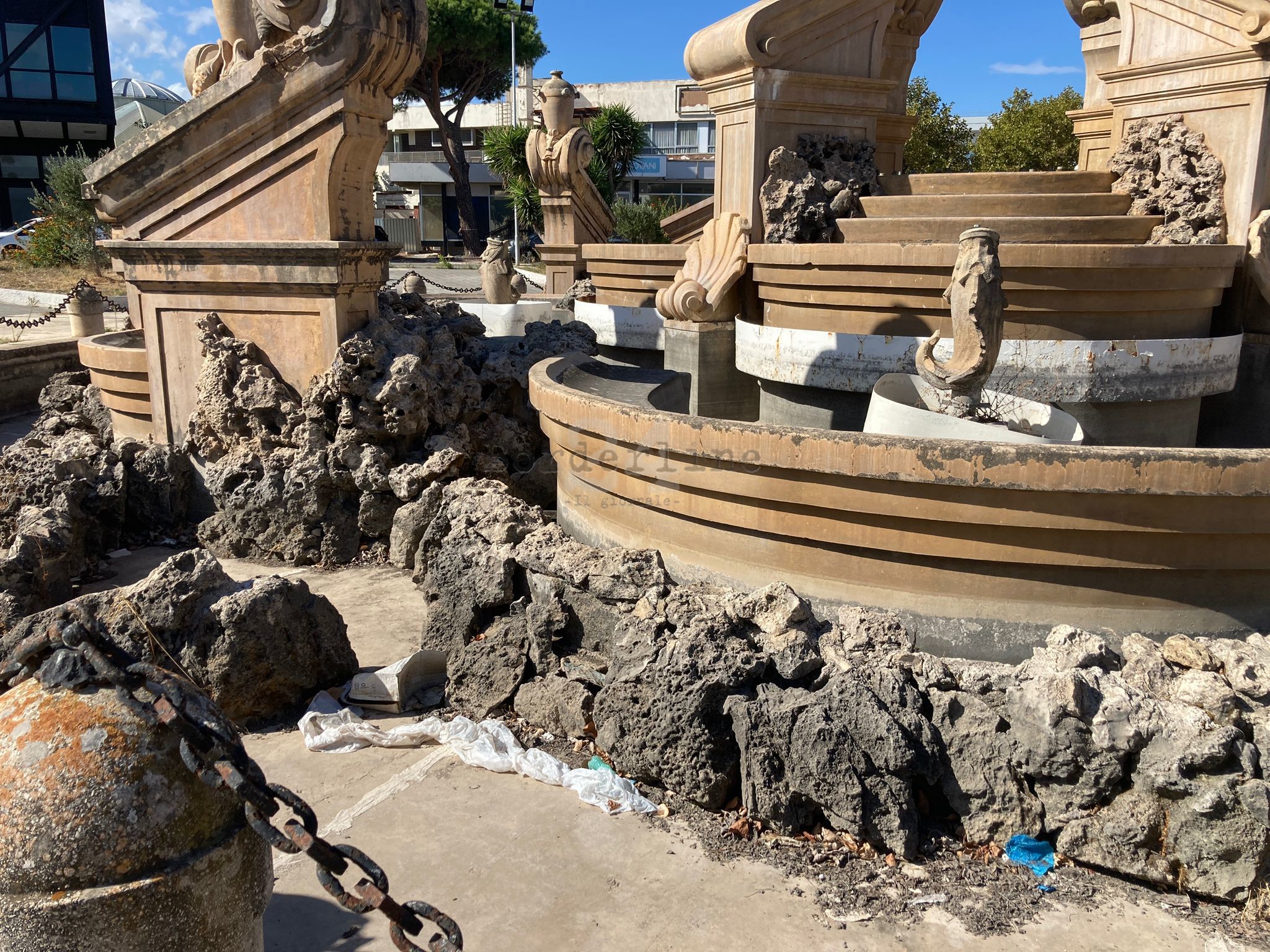 Tutt’intorno solo i segni del vuoto. Enormi strutture impolverate, in alcuni casi persino con le porte rotte e tenute chiuse col fil di ferro. Passeggiando per i viali un tempo animati dai visitatori dalla provincia e da fuori regione, anche le chiome degli alberi sembrano fuori controllo. Cresciute senza alcun tipo di cura, lentamente i rami toccano il selciato. Anche la fontana, altro storico punto di ritrovo, è vuota, ovviamente fuori uso. Oggi è un ricettacolo per i rifiuti.