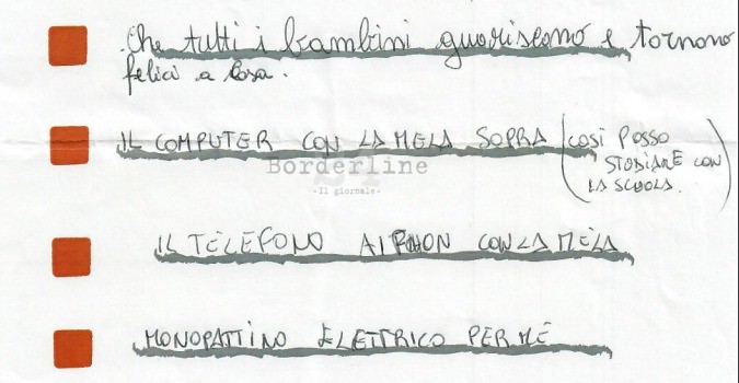 Ed eccole le richieste più simpatiche (lista in basso): dal computer “con la mela sopra”, ai peluche, barbie e perfino una mini cucina per creare dolci. Il sacco pieno di regali sarà portato tra i lettini il 16 dicembre.