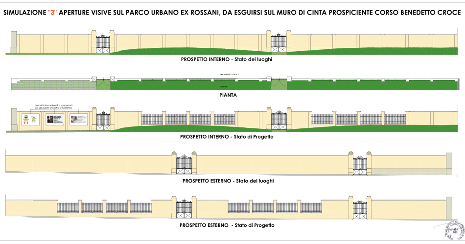 “Si tratta di una trasformazione importante che consentirà un’ampia visuale prospettica del nuova parco realizzato da via Benedetto Croce – spiega l’assessore Galasso – e contemporaneamente permetterà di salvaguardare la presenza di un muro storico che, tra le altre cose, tutela lo stato dei luoghi visto il dislivello che esiste tra il parco e il marciapiede stradale. Questo è certamente un riscontro positivo che arriva al termine di un lungo percorso che abbiamo portato avanti insieme ai cittadini e che in qualche modo restituisce in maniera ancora più concreta la nuova area dell’ex Caserma Rossani alla città. Già nelle prossime settimane gli uffici comunali saranno al lavoro per mettere a punto il progetto definitivo da presentare alla Soprintendenza”.