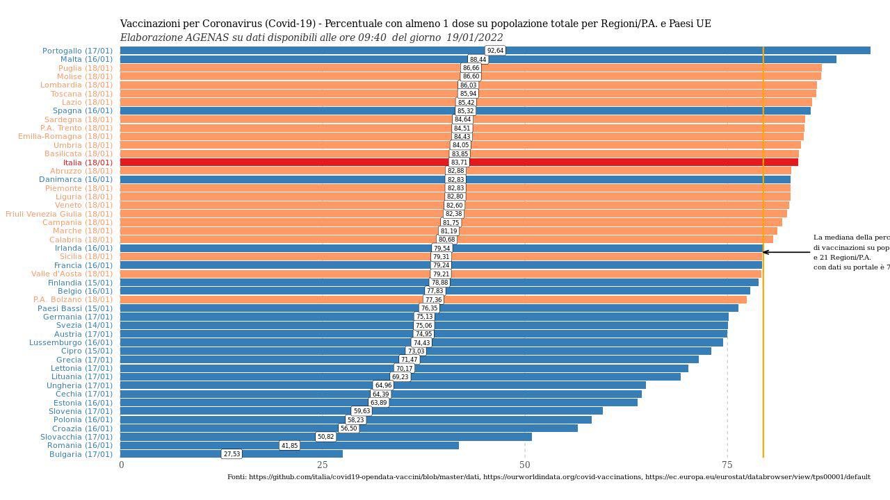 Secondo quanto emerso dal report, con l’86,66% della popolazione generale che ha ricevuto almeno una dose di vaccino, la Puglia conferma il primato a livello nazionale (media italiana 83,71%), e conquista la terza posizione in Europa, immediatamente dopo Malta e Portogallo.