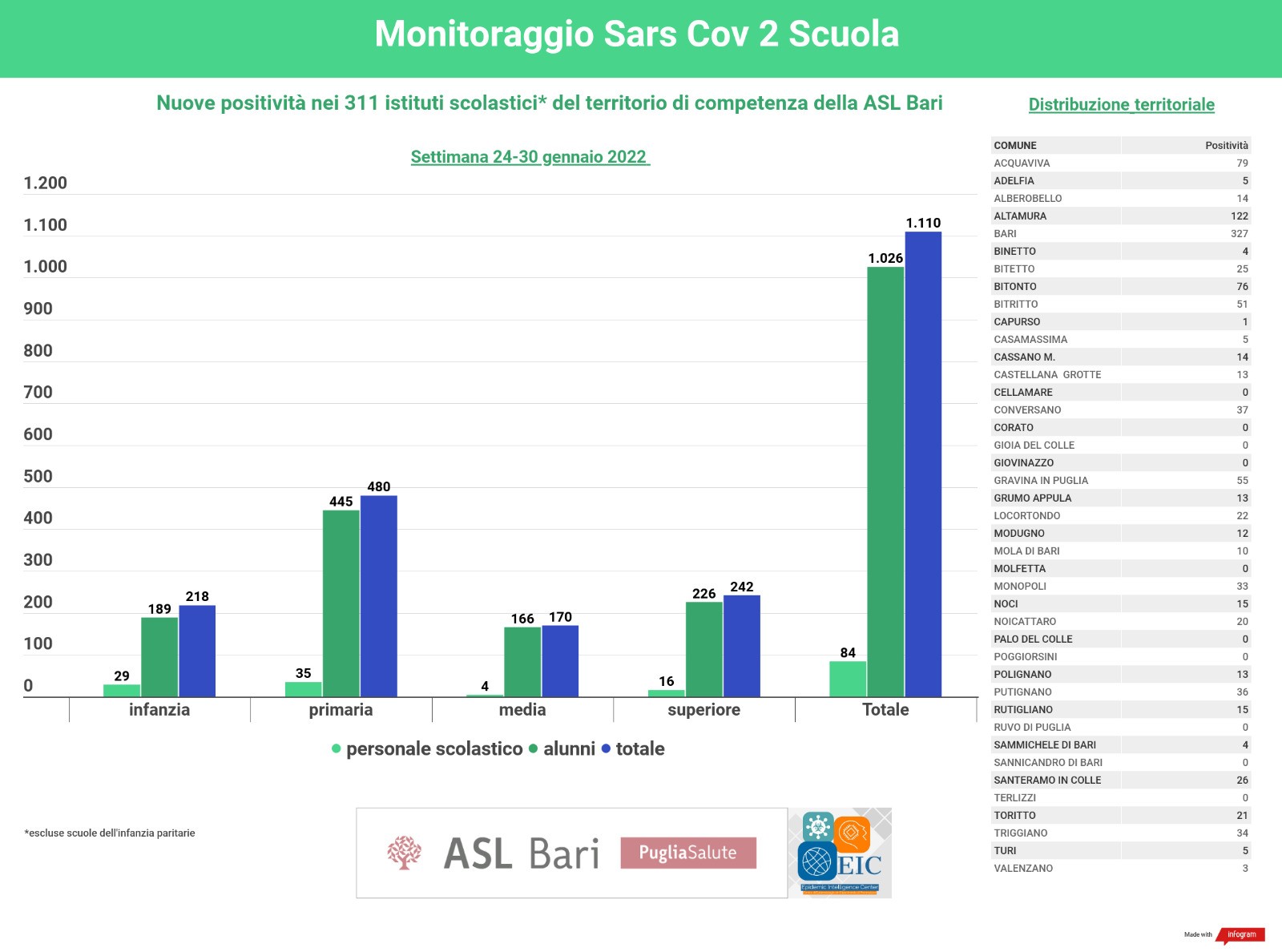 “Le classi che attualmente sono interessate da un provvedimento di quarantena – ha commentato Severina Cavalli, referente team Covid scuole Eic – sono passate da 229 della settimana precedente a 255 classi in tutti gli istituti. Il numero più elevato di infezioni tra gli studenti è stato ancora una volta tracciato nella scuola primaria” – ha concluso. Intanto il Dipartimento di prevenzione è impegnato anche sul fronte delle vaccinazioni pediatriche che finora hanno raggiunto numeri e coperture da record in provincia di Bari.