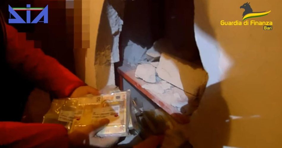 Numerosi sono stati i riscontri operativi eseguiti, durante le indagini, dalla D.I.A. e dal Nucleo PEF Bari che hanno permesso di sottoporre a sequestro circa 186 kg. di sostanza stupefacente (tra cocaina e hashish), oltre 4,4 milioni di euro in contanti abilmente occultati nelle intercapedini artatamente ricavate nella muratura delle abitazioni nella disponibilità dei vertici dei sodalizi, nonché 43.000 litri di miscele lubrificanti destinati all’autotrazione in evasione delle accise.