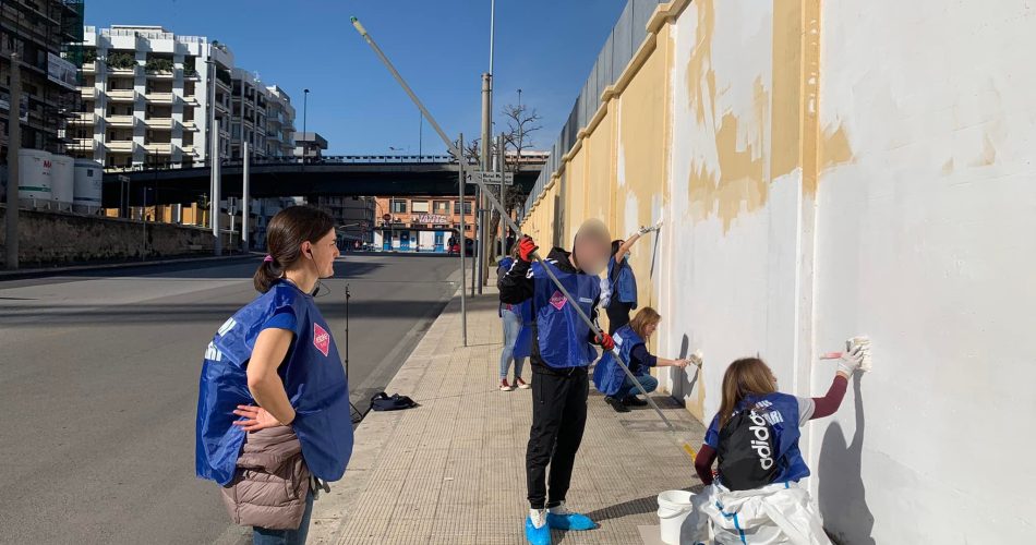 I cittadini hanno voluto così lanciare un messaggio contro il degrado. “Dopo la copertura di alcune scritte e una passata di fissativo, oggi è toccato al fondo bianco per vernici”, raccontano.