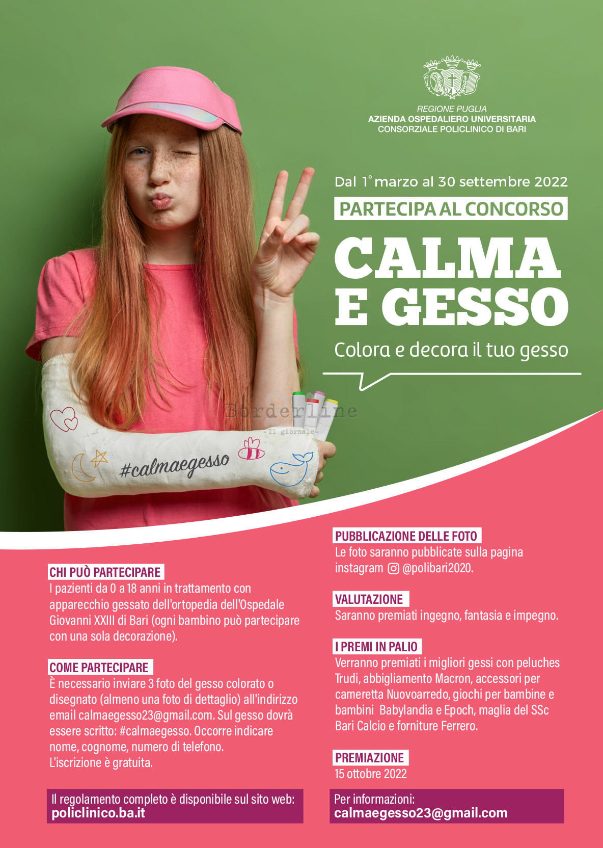 Calma e Gesso. È il concorso ideato e lanciato dall’unità operativa di ortopedia del Giovanni XXIII per stimolare la creatività e la fantasia dei bambini con l’obiettivo di alleggerire il periodo in cui sono immobilizzati con il gesso.