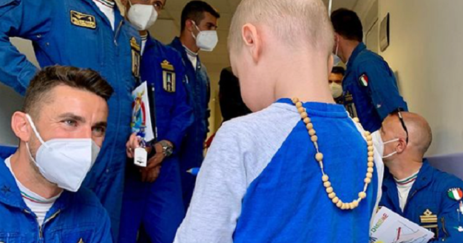 I piloti della pattuglia acrobatica dell’ Aeronautica militare questo pomeriggio hanno fatto visita ai piccoli pazienti di oncoematologia pediatrica.