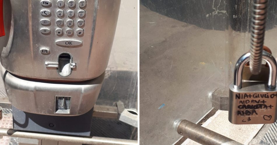Bari, lucchetti d’amore sulle cabine telefoniche: “Ecco come usarle”