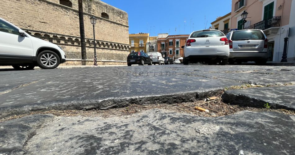 “Nella città vecchia – spiega – ci sono dei veri e propri tragitti di guerra. In particolare in via Boemondo, piazza Federico II di Svevia, piazza Odegitria e piazza Chiurlia”. Un anno fa gli operai del Comune intervennero per la sistemazione delle basole in largo Albicocca, la piazza degli innamorati. Seguirono alcune bonifiche della pavimentazione in piazza Mercantile, via Venezia e in via Boemondo. Ad oggi non sembrano sufficienti.