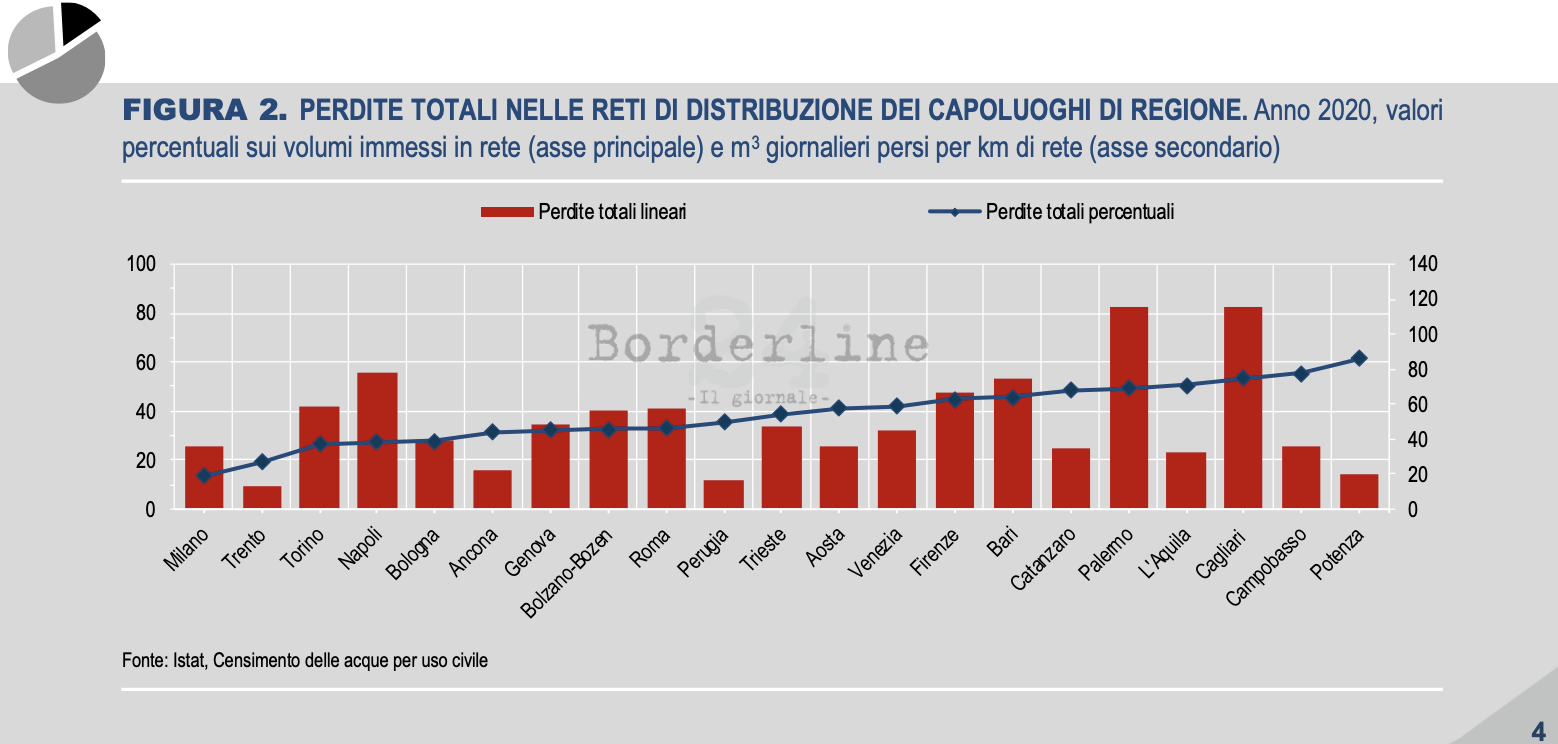 Nel 2020, ben 11 Comuni capoluogo di provincia, localizzati tutti nel Mezzogiorno, hanno fatto ricorso a misure di razionamento nella distribuzione dell’acqua potabile, disponendo la riduzione o sospensione dell’erogazione idrica. Una situazione che è peggiorata nel 2022, e ad esempio Milano ha iniziato a limitare gli approvvigionamenti alle fontane in vista della razionalizzazione con un’estate torbida.
