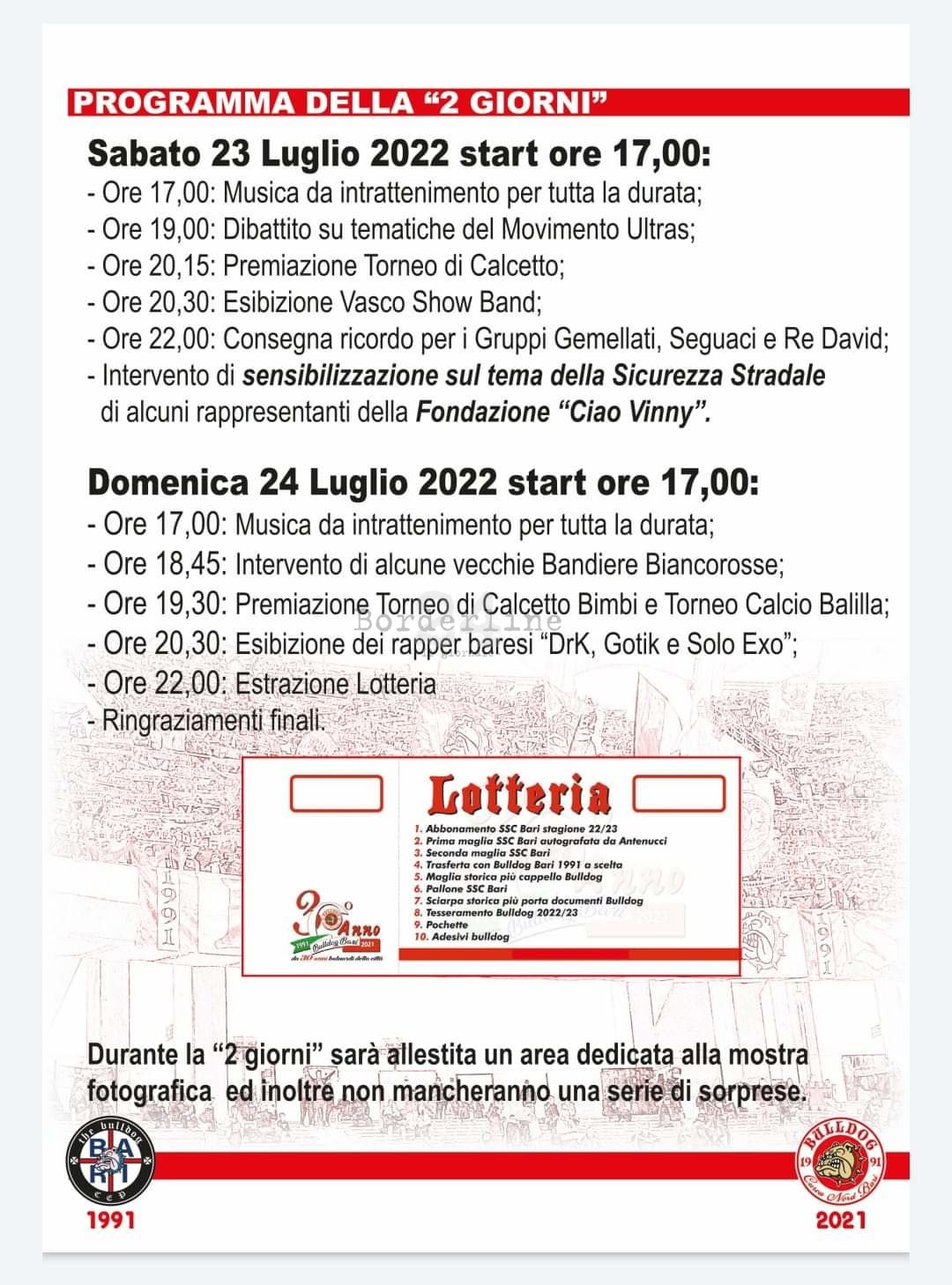 Gli ultras Bulldog del Bari hanno festeggiato ieri il trentennale con una iniziativa al San Paolo. Nel parco della legalità allestito anche un palco da dove si è esibito il sindaco Antonio Decaro cantando un brano di Vasco Rossi. Tante le persone che hanno preso parte ai festeggiamenti del gruppo di tifosi del Bari. (Video La Voce del San Paolo)