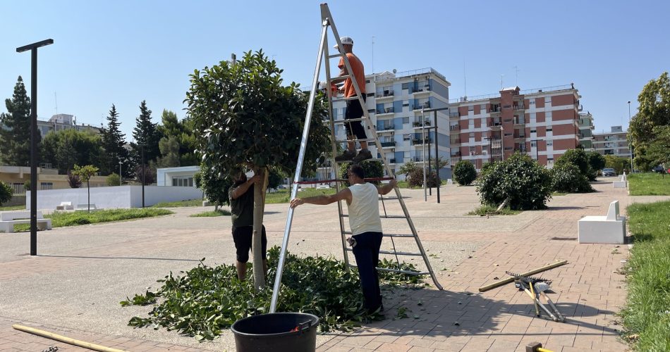 Le squadre della Multiservizi continuano le potature degli alberi pericolosi tra le case Arca di viale Japigia, giardini Baden Powell e la spiaggia di Pane e Pomodoro.