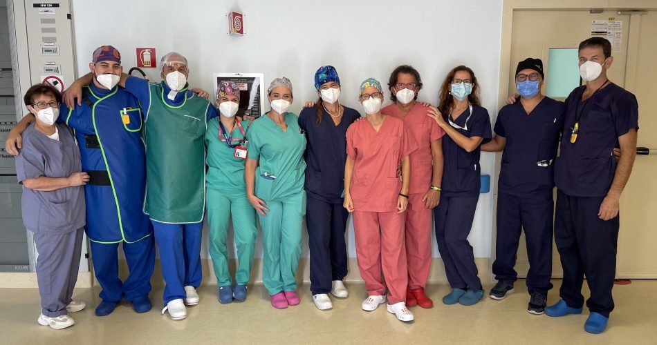 L’equipe operatoria, prima ed unica in Puglia a realizzare interventi transcatetere su valvola tricuspide, è composta dai medici dell’U.O.C. di Cardiologia diretta dal dott. Massimo Grimaldi, nello specifico gli interventisti dott.ssa Katya Lucarelli e dott. Vito Casamassima. Entrambi operano in simbiosi con i cardiologi-ecografisti interventisti dott.ssa Federica Troisi e dott. Vincenzo Bellomo, responsabili del monitoraggio ecografico continuo intra-procedurale. Indispensabile durante l’intervento il contributo del cardio-anestesista, dott.ssa Francesca Lombardi e del personale tecnico-radiologico ed infermieristico di sala operatoria.