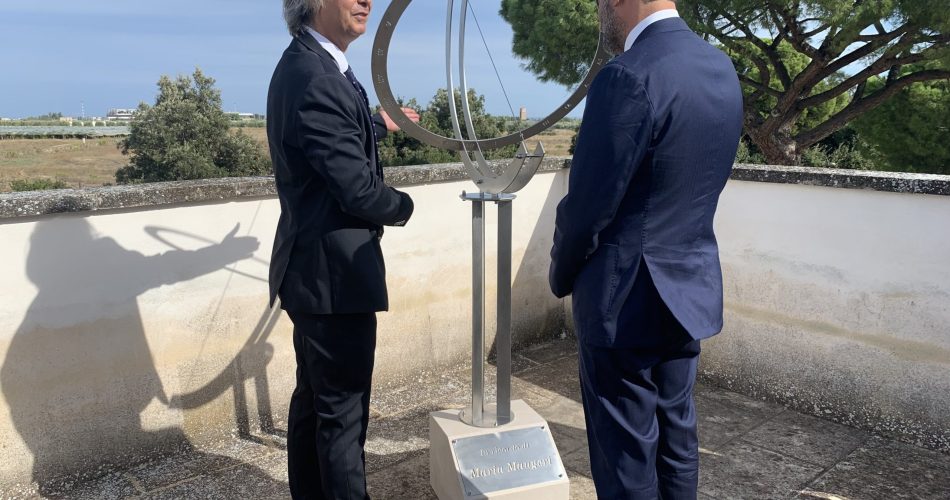 Questa mattina il sindaco di Bari, Antonio Decaro ha partecipato, sul terrazzo di Villa Framarino, nel parco naturale regionale di Lama Balice, alla cerimonia di intitolazione di una meridiana di tipo sfera armillare in memoria di Maria Maugeri. L’iniziativa è stata curata e organizzata dall’associazione culturale Andromeda, guidata dal presidente Pierluigi Catizone, presidente che svolge attività di didattica e divulgazione astronomica e ambientale a Villa Framarino.
