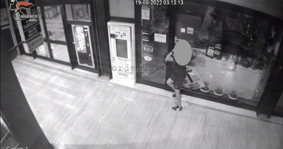 Al presunto autore delle 3 “spaccate” l’ordinanza di custodia cautelare è stata notificata mentre si trovava ristretto presso la Casa Circondariale di Bari; ove era stato condotto dai militari del Nucleo Radiomobile che lo avevano arrestato in flagranza di furto. Questa volta era stata presa di mira una palestra nel quartiere Sant’Anna di Bari; lì infatti, dopo averne infranto la vetrata con un tombino, aveva rubato un telefono cellulare e 100€ in contanti. Immediatamente individuato dai militari dell’Arma, è stato bloccato all’altezza della Piazza del Ferrarese.