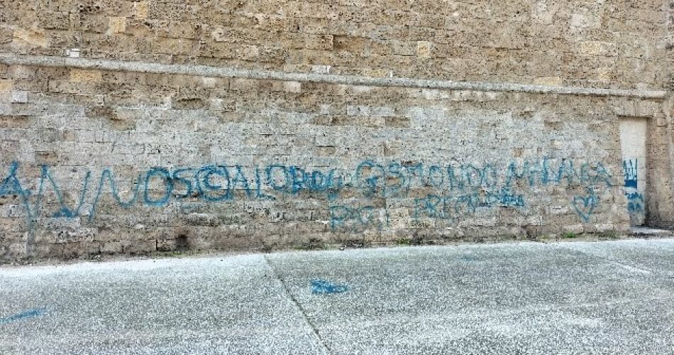 Alcuni ragazzi ieri sera hanno sfregiato il Castello Svevo con delle scritte indecifrabili sui muri. Questa è la “Terra di nessuno in balia di bande di giovani teppisti”, scrive il comitato Parco del Castello di Bari.