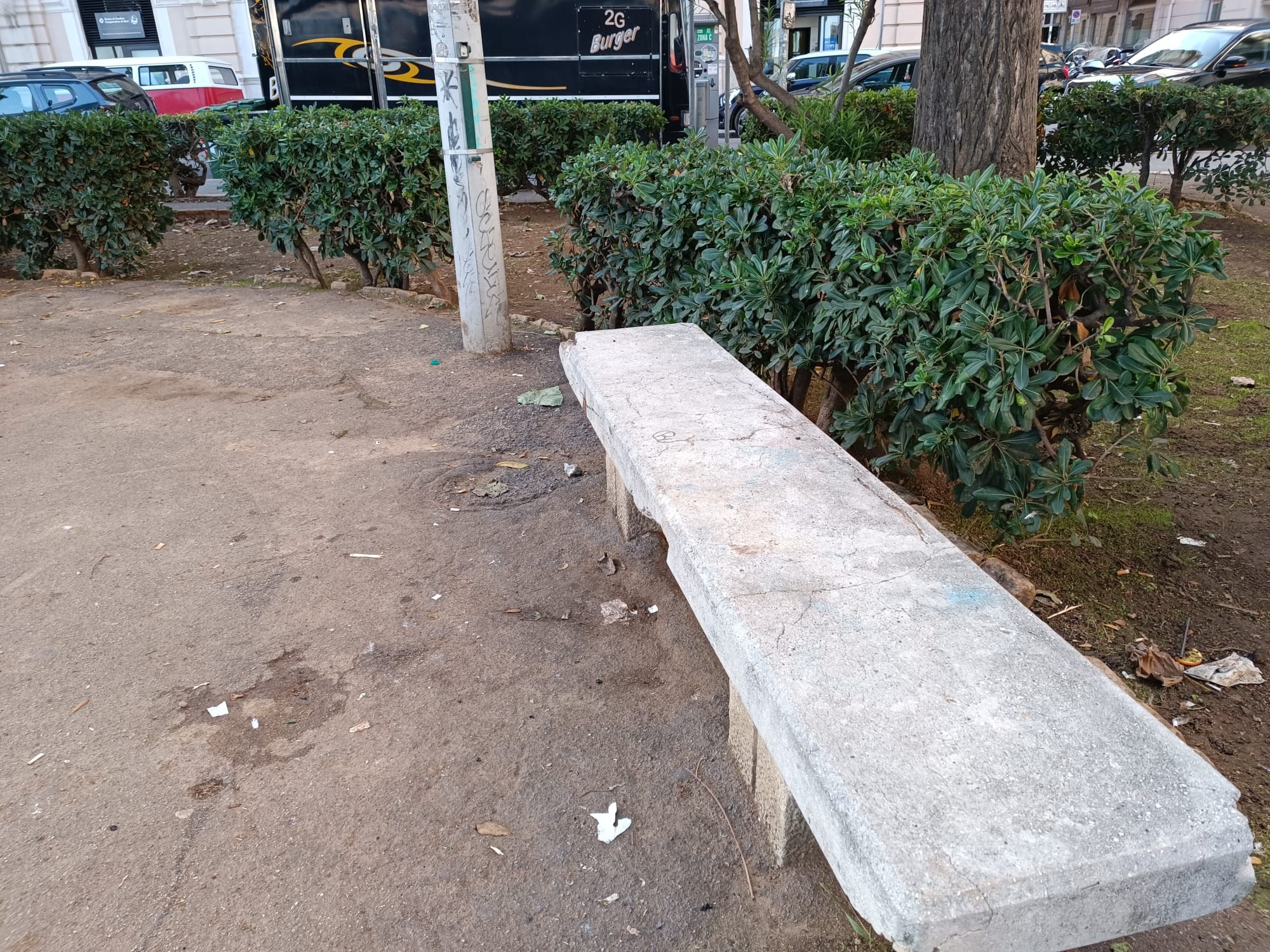 Siamo in centro. Nei giardini di largo Giordano Bruno sul lungomare di Bari, una delle aree più frequentate della movida barese. Migliaia sono i ragazzi che affollano quest’area soprattutto nelle ore serali. Quel che appare purtroppo è una sensazione di degrado con le panchine rotte, i viali dissestati e molti rifiuti per strada. Di segnalazioni ne arrivano tante da parecchi cittadini che lamentano i pochi interventi per ripristinare la zona.