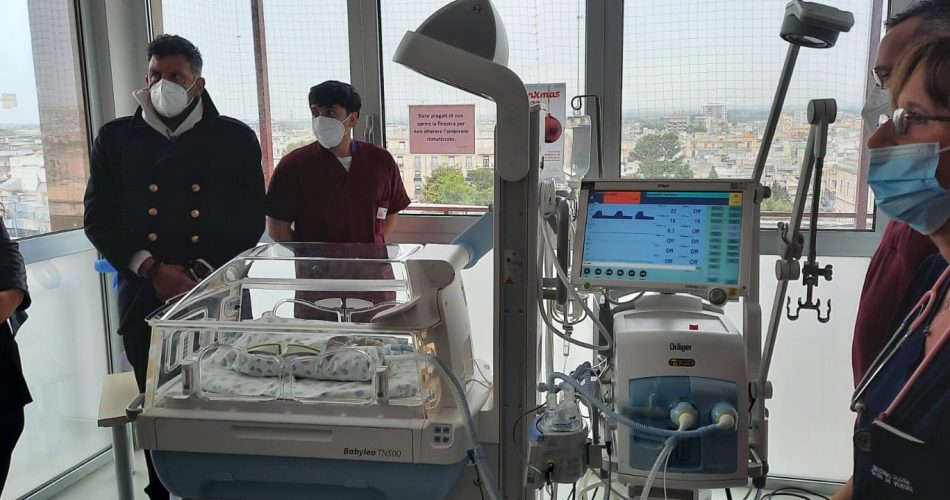 Da questo momento, infatti, l’ospedale sarà dotato di nuovi sistemi hi-tech con i quali, i prematuri di bassa età gestazionale potranno contare sulla possibilità di essere assistiti in “DRICU”, cioè di ricevere assistenza con le stesse raffinate tecnologie della terapia intensiva già in sala parto. Un nuovo servizio disponibile già a partire da oggi nella Terapia Intensiva Neonatale dell’Ospedale “Di Venere” di Bari, grazie alla generosa donazione della famiglia Scardigno e all’iniziativa dell’associazione Bimbintin Onlus che, per rendere operativa questa assistenza sin dai primi momenti di vita, ha donato il necessario per carrellare un ventilatore polmonare corredato di sistema di umidificazione e riscaldamento dei gas e dedicarlo a questa funzione. Il ventilatore si collega alla incubatrice per mezzo di un braccio meccanico che rende sicuro il trasporto in Tin. Alla consegna, stamattina in reparto, sono intervenuti il Direttore Sanitario ASL Bari, Danny Sivo, il Direttore medico di presidio Vincenzo Fortunato, il Direttore del Dipartimento Gestione Avanzata Rischio Riproduttivo e Gravidanze a Rischio Paolo Volpe, il Direttore ff della Terapia Intensiva Neonatale Gabriele D’Amato, la vicepresidente di Bimbintin Isabella Tursi e la dr.ssa Flavia Petrillo, Direttore dell’UOS di Neonatologia nonché Direttore scientifico della stessa associazione.