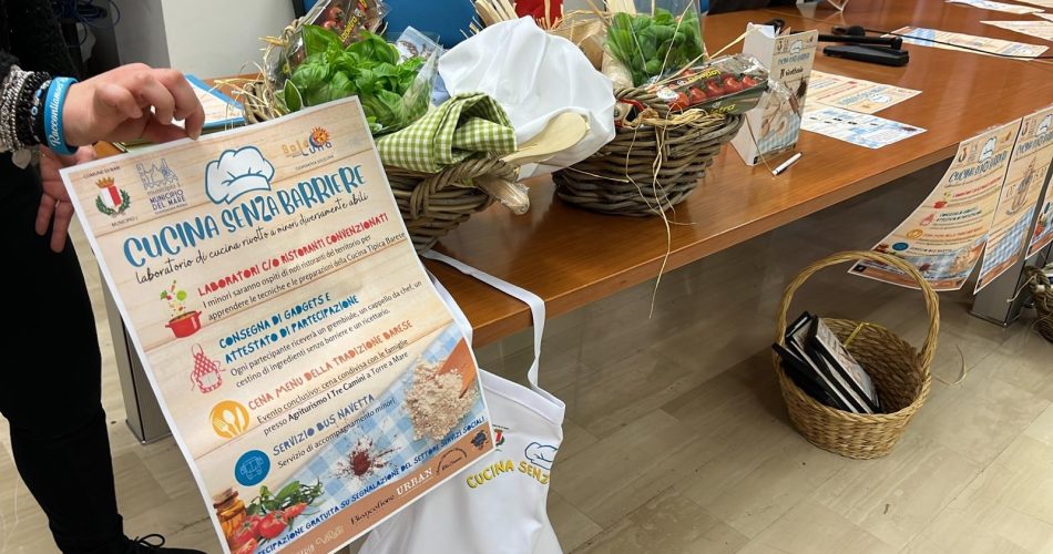 Prenderà il via dalla sede del Municipio I, in via Trevisani 206, il progetto di inclusione sociale denominato “Cucina senza barriere”, promosso dallo stesso Municipio in collaborazione con la cooperativa sociale SoleLuna. L’iniziativa, che consiste in un laboratorio enogastronomico che consentirà ai partecipanti di conoscere approfonditamente le tradizioni culinarie baresi, è rivolta a quindici minori diversamente abili del territorio municipale.