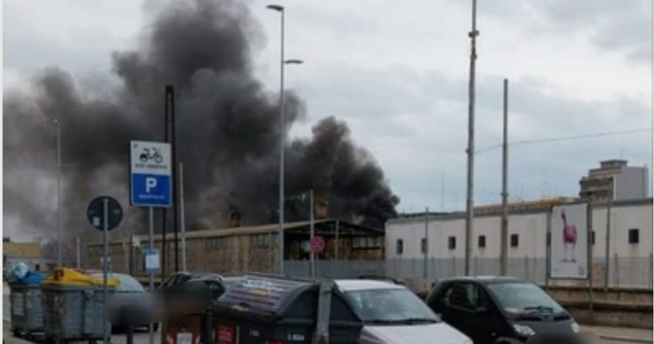 Bari, fuoco in un deposito abbandonato: probabilmente acceso da clochard in cerca di calore