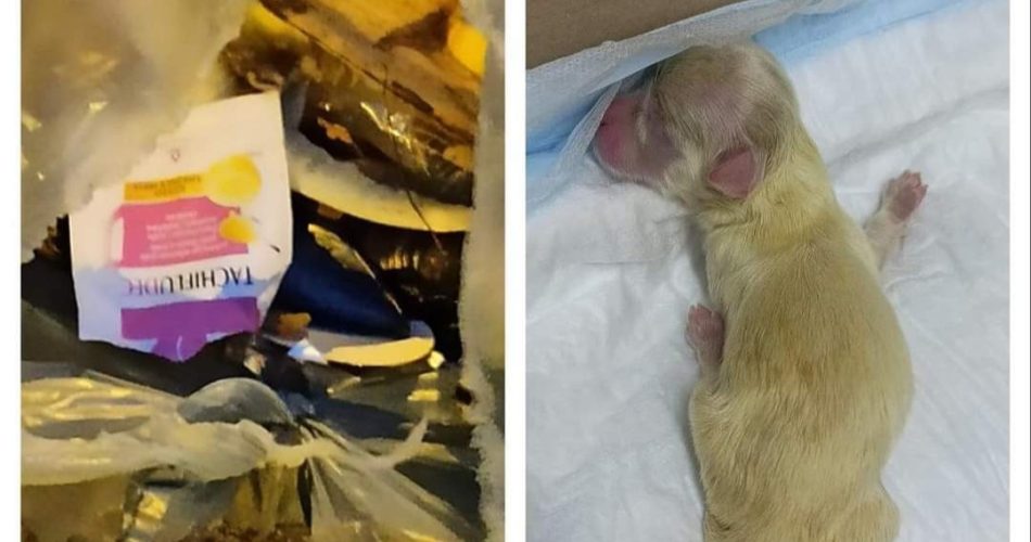 Un cucciolo appena nato era stato chiuso nel sacchetto dei rifiuti. Gli altri due fratellini erano già deceduti, morti di fame e freddo.