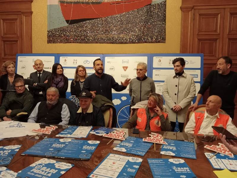 È stata presentata questa mattina, nella sala giunta di Palazzo di Città, alla presenza degli assessori comunali allo Sport, Pietro Petruzzelli, al Welfare, Francesca Bottalico, alla Mobilità, Giuseppe Galasso, e alle Politiche educative e giovanili, Paola Romano, la sesta edizione di Bari Pedala, la festa delle biciclette organizzata, anche quest’anno, dalla scuola di ciclismo Franco Ballerini, dalla cooperativa Zero Barriere e dall’associazione Lezzanzare con il patrocinio dell’assessorato comunale allo Sport e della Federazione Ciclistica Italiana, in programma il 22 e 23 aprile prossimi. All’incontro con la stampa hanno partecipato gli organizzatori Marco Livrea per Zero Barriere e Alessandro Antonacci e Antonio Garofalo per Lezzanzare, Marica Marzulli, figlia del compianto Nicola Marzulli, cui gli organizzatori di Bari Pedala hanno voluto intitolare un premio, e la presidente della commissione consiliare Pari opportunità Silvia Russo Frattasi.