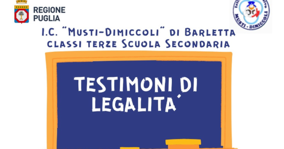 L’Istituto Comprensivo Musti Dimiccoli di Barletta partecipa all’Incontro formativo dal titolo “Testimoni di legalità”, che si terrà sabato 20 maggio ore 10 presso la palestra del plesso “Musti”, per celebrare la Giornata nazionale della legalità in ricordo della strage di Capaci avvenuta il 23 maggio 1992. Con questo incontro rivolto agli alunni delle classi terze della Scuola Secondaria si intende promuovere e divulgare la cultura della legalità, offrire spunti di riflessione sulle vittime di mafia e, attraverso il dialogo con funzionari testimoni di legalità, favorire negli adolescenti la cultura del rispetto delle regole e delle leggi dello Stato per contrastare il disagio minorile, che spesso sfocia nel fenomeno delle baby-gang. Interverranno come relatori il Dr. Ludovico Abbaticchio, Garante dei diritti del minore dell’infanzia e dell’adolescenza della Regione Puglia, e la Dott.ssa Debora Ciliento, Consigliere regionale e Vicepresidente della Commissione regionale di studio e d’inchiesta sul fenomeno della criminalità organizzata in Puglia. Destinatari dell’incontro saranno gli alunni delle Classi Terze della Scuola Secondaria di I grado “Dimiccoli” 3^A, 3^C, 3^D, 3^E.