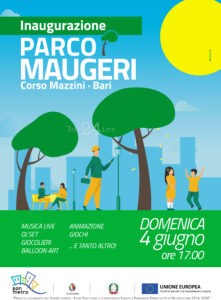 Tutto pronto per il parco Maugeri che si prepara ad accogliere la cittadinanza. Domenica 4 giugno, a partire dalle ore 17, il sindaco Antonio Decaro inaugurerà con una grande festa aperta alla città il nuovo parco urbano intitolato alla memoria di Maria Maugeri realizzato nel sito dell’ex gasometro in corso Mazzini. All’inaugurazione parteciperanno i familiari dell’ex assessore all’Ambiente del Comune di Bari Maria Maugeri, i rappresentanti della giunta comunale e del Municipio I.