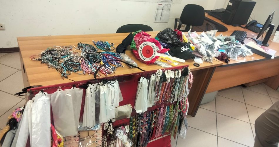 Entrando più nel dettaglio, in prossimità del lungomare a Sud di Bari, sono stati sequestrati circa duecento pezzi di bevande (birre e bevande in lattina); circa 800 pezzi tra scarpe e abbigliamento, accessori telefonia, cover e occhiali con griffe contraffatte ma di bassa fattura. Intercettata un venditore abusivo su strada con 18 pezzi di formaggio a pasta filante, merce tutta priva di indicazioni sulla tracciabilita’ per circa 15 kg di prodotto. I soggetti colti nell’esercizio abusivo delle attività identificati sono stati sanzionati per violazioni alla legge regionale sul Commercio n.24/2015 che prevede una sanzione pecuniaria amministrativa pari a 5000 euro (ove si acceda al pagamento in misura ridotta), prevista la confisca della merce e dei mezzi utilizzati per svolgere l’attività abusiva, oltre alle sanzioni previste per le violazioni in materia igienico sanitaria.