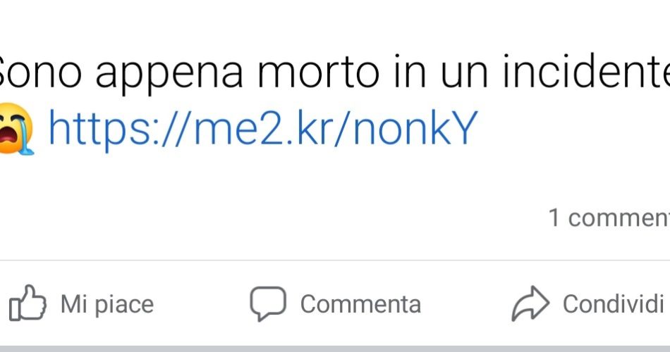 Sono già tante le “vittime” di un macabro virus che sta impazzando su Facebook. Sui profili compare la scritta nello stato “Sono morto in un incidente” seguito da un link sul quale molti hanno cliccato.