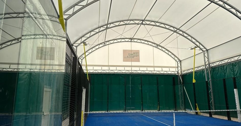 La struttura, fruibile 24 ore su 24, è stata realizzata da Tennis Tecnica che ha utilizzato materiali di ultima generazione. È composta da pannelli modulari che ne permettono l’utilizzo tutto l’anno. Ovvero: la copertura con telo fisso e chiusura laterale consente l’aerazione soprattutto in estate con le temperature particolarmente elevate grazie all’azione di un sistema ad elementi in acciaio in elevazione che sostengono il telo di copertura. I vetri a più strati garantiscono la sicurezza perché – in caso di rottura – la pellicola di cui sono forniti impedisce lo dispersione ed il rimbalzo dei frammenti.