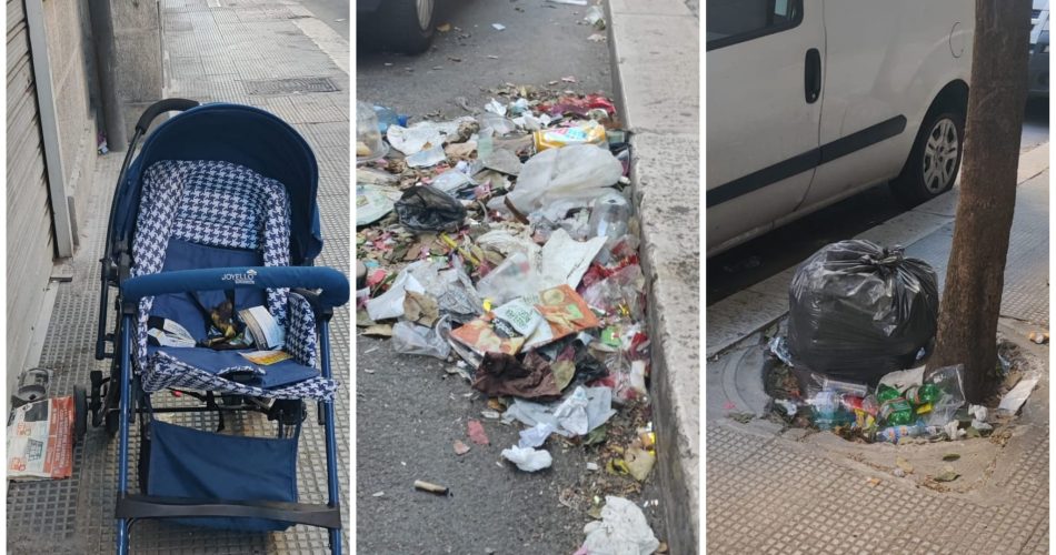 Bustoni di immondizia abbandonati sui marciapiedi o nelle aiuole, bottiglie di vetro e plastica, carte e ancora, passeggini, che, giorno dopo giorno, diventano dei veri e propri contenitori di rifiuti. È questo lo scenario in cui ci si imbatte percorrendo via de Rossi, ma non solo.