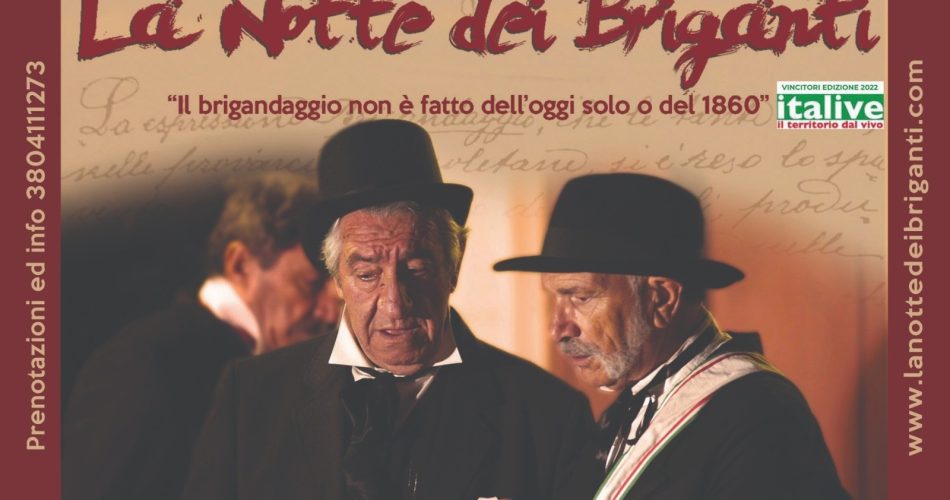 Si tratta di uno spettacolo en plein air che da 17 anni racconta al pubblico di partecipanti, appassionati di tutte le età, i fatti realmente accaduti e che hanno caratterizzato la vita e le vicende di briganti o brigantesse vissuti in terra di Puglia, seppur in versione romanzata e con un pizzico di immaginazione e fantasia. Per questa edizione, il plot è incentrato sui fatti del ‘brigantaggio della restaurazione’ precedente l’unità nazionale. Le sette scene raccontano i fatti del brigante Don Ciro Anicchiarico. “La Notte dei Briganti ad Alberobello – conclude Luca De Felice, Presidente dell’Associazione Sylva Tour and Didactics – offre un’occasione di riflessione sulla storia dell’ottocento nella Murgia dei trulli. Rappresentando la figura del prete brigante, Don Ciro Annichiarico, questa edizione approfondisce il fenomeno del brigantaggio della restaurazione, con particolare riferimento agli eventi che imperversavano anche nei nostri boschi. La manifestazione rappresenta infine un forte momento di incontro intergenerazionale e di coesione sociale, proprio per le differenti età dei figuranti, che con passione e determinazione partecipano e danno vita a questa straordinaria ricostruzione storica”.