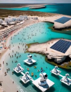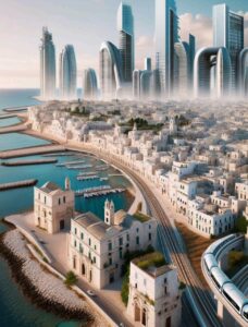 Droni giganti, ferrovie all’avanguardia e treni tecnologici, ma non solo anche pannelli solari sui lembi di sabbia o scogli, boschi verticali e robot per l’agricoltura. È così che, l’intelligenza artificiale, ha immaginato la Puglia tra 100 anni. Le immagini sono state pubblicate sulla pagina attiva su Tik Tok “The Time Machine Now” che già negli scorsi mesi aveva realizzato progetti simili per altre città dello stivale.
