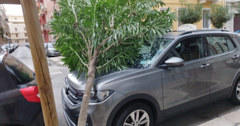 Bari, decine di alberi caduti: danni alle auto