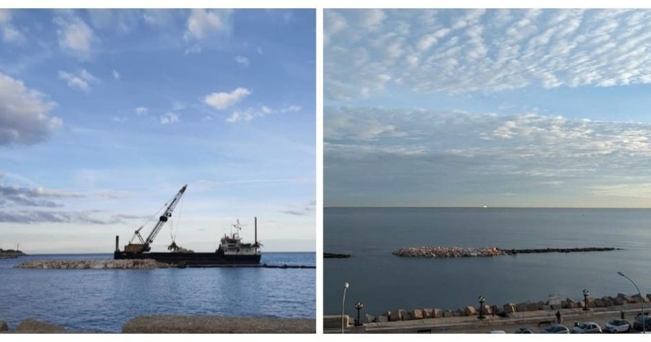 “Già da qualche mese – ha spiegato il sindaco – è partito il cantiere per realizzare il nuovo waterfront della città vecchia: è stato abbattuto il vecchio mercato del pesce e ora una motonave dotata di gru con braccio da 24 mt, sta creando una nuova scogliera lunga 450 metri e larga 35 metri composta da diversi strati: in questa fase si può vedere la prima parte della mantellata esterna che poggia su uno “strato filtro”, costituito da elementi lapidei che pesano tra i 300 kg e i 700 kg” – ha concluso.