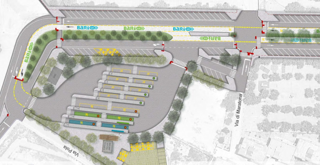 Si tratta di modifiche tecniche e funzionali relative a tre (dei quattro) capolinea – via di Maratona, via Aquilino e piazza Moro, in corrispondenza dei quali saranno installate delle pensiline smart. Il progetto vincitore ha previsto la possibilità di incrementare gli stalli di sosta per i mezzi del Brt. Particolare attenzione è stata dedicata al layout delle stazioni di capolinea attraverso il miglioramento dei collegamenti pedonali con le aree limitrofe.