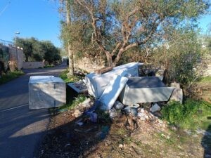 Ci sono elettrodomestici, residui di cantieri edili, bustoni pieni di indifferenziata, ma anche piante e carcasse di auto. Siamo nel Municipio 5, in particolare a Palese, in via Lepore, stradina di campagna che collega direttamente a via Gabriele D’Annunzio, arteria che conduce all’aeroporto, ma anche ad altre zone della città. Qui, evidenziano i residenti “ogni giorno aumentano i rifiuti a bordo strada tanto che a volte è anche difficile percorrerla in auto”.