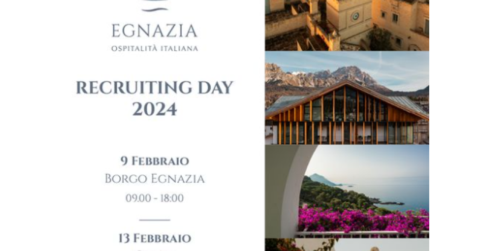 ARPAL Puglia, attraverso il Centro per l’impiego di Ostuni, supporta 𝐄𝐠𝐧𝐚𝐳𝐢𝐚 𝐎𝐬𝐩𝐢𝐭𝐚𝐥𝐢𝐭𝐚̀ 𝐈𝐭𝐚𝐥𝐢𝐚𝐧𝐚, gruppo di gestione alberghiera fondato da Aldo Melpignano, nei 𝐑𝐞𝐜𝐫𝐮𝐢𝐭𝐢𝐧𝐠 𝐃𝐚𝐲𝐬. Saranno previste due date: la prima per chi potrà e vorrà partecipare di persona il 𝟗 𝐟𝐞𝐛𝐛𝐫𝐚𝐢𝐨 𝐚 𝐁𝐨𝐫𝐠𝐨 𝐄𝐠𝐧𝐚𝐳𝐢𝐚 (𝐁𝐑) e la seconda – il 𝟏𝟑 𝐟𝐞𝐛𝐛𝐫𝐚𝐢𝐨 – per coloro che preferiscono partecipare 𝐯𝐢𝐫𝐭𝐮𝐚𝐥𝐦𝐞𝐧𝐭𝐞.