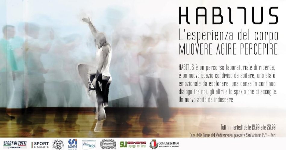Un laboratorio di danza per sperimentare il dialogo tra corpo e stati emotivi. Prenderà il via a Bari, il progetto Habitus, percorso laboratoriale di danza e ricerca del dialogo tra corpo e stati emotivi promosso dall’Asd “I Lupi di San Francesco”, vincitrice dell’avviso pubblico “Quartieri” a cura di Sport e Salute e del dipartimento per lo Sport, e realizzato in collaborazione con il CSI Comitato di Bari e il patrocinio dell’assessorato al Welfare, con l’obiettivo di favorire, attraverso attività motorie, la socializzazione e il benessere. Alla fine del percorso, che si terrà tutti i martedì dalle ore 19 alle 20, negli spazi della Casa delle Donne del Mediterraneo, in piazzetta Sant’Antonio 18/B, è prevista l’esibizione – non obbligatoria – per i/le partecipanti. La partecipazione è gratuita, previa prenotazione.